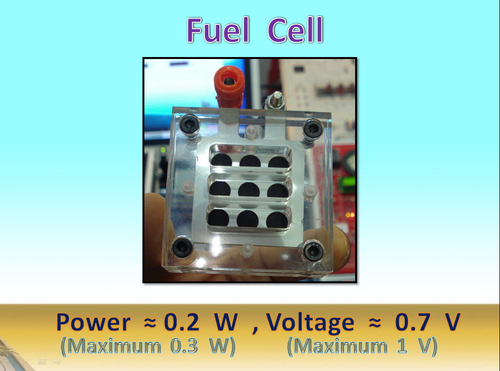 ต้นแบบเซลล์เชื้อเพลิงแบบพกพาขนาด 100W กำลังจ่ายพลังงานให้กับโทรทัศน์และเครื่องเล่นวีดีโอ